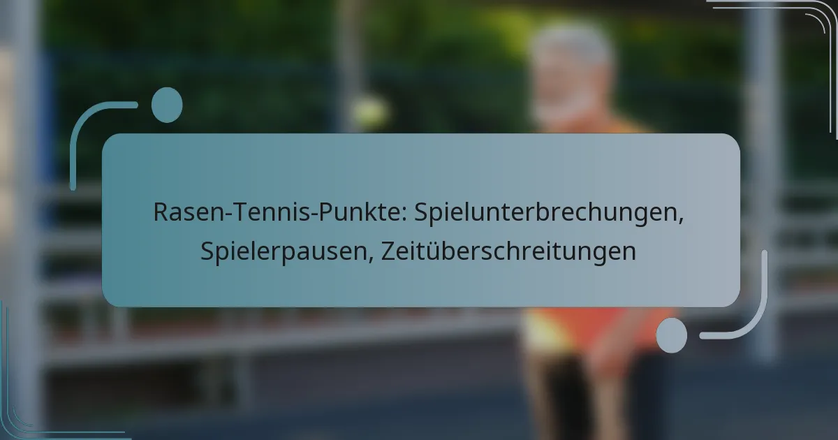 Das Punktesystem im Rasentennis umfasst verschiedene Elemente, die den Spielfluss unterbrechen können, einschließlich Spielunterbrechungen, Pausen der Spieler und Zeitüberschreitungen. Spielunterbrechungen können durch Faktoren wie Wetter oder Verletzungen verursacht werden, während Pausen der Spieler eine notwendige Erholung oder medizinische Behandlung ermöglichen. Darüber hinaus treten Zeitüberschreitungen auf, wenn Spieler die vorgegebene Zeit zwischen den Punkten überschreiten, was ihre Leistung und die Dynamik des gesamten Spiels beeinträchtigen kann. Das Verständnis dieser Aspekte ist entscheidend für die Wahrung der Integrität des Spiels.