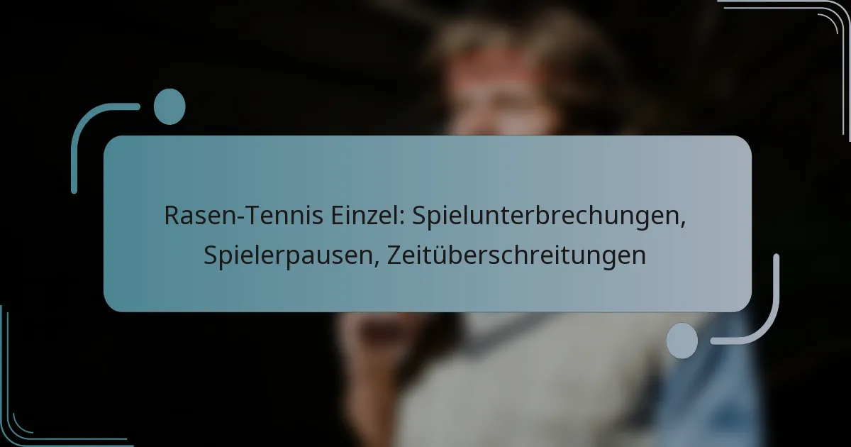 Bei Einzelspielen im Rasentennis können Spielunterbrechungen den Rhythmus des Matches erheblich beeinflussen, bedingt durch Pausen der Spieler, Wetteränderungen oder externe Faktoren. Spielerpausen sind geregelt, um sicherzustellen, dass sie den Spielfluss nicht stören, während Zeitüberschreitungen auftreten, wenn Spieler die vorgegebene Zeit zwischen Punkten oder Spielen überschreiten, was möglicherweise zu Strafen führen kann. Das Verständnis dieser Elemente ist entscheidend für sowohl Spieler als auch Zuschauer, um die Dynamik des Spiels zu schätzen.