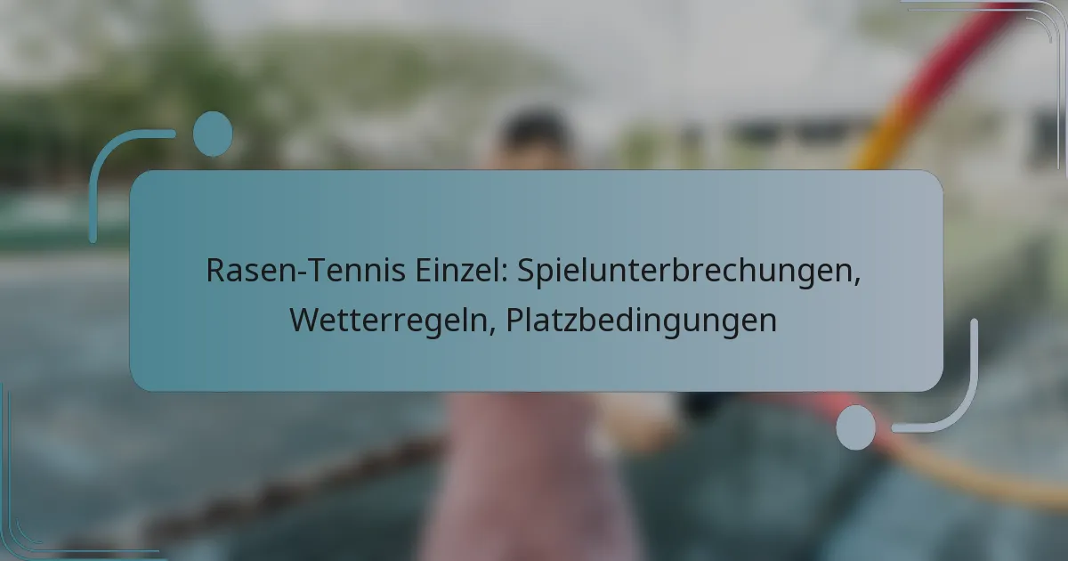 Einzelspiele im Rasentennis können aus verschiedenen Gründen unterbrochen werden, einschließlich ungünstiger Wetterbedingungen und Spielerverletzungen. Das Verständnis der Regeln, die diese Unterbrechungen regeln, ist entscheidend für sowohl Spieler als auch Zuschauer, da sie bestimmen, wie und wann das Spiel fortgesetzt werden kann. Wetterfaktoren wie Regen, Wind und extreme Temperaturen können den Spielplan und die Leistung der Spieler erheblich beeinflussen, während die Platzbedingungen ebenfalls eine wichtige Rolle bei der Beeinflussung des Spiels und der Ergebnisse spielen.